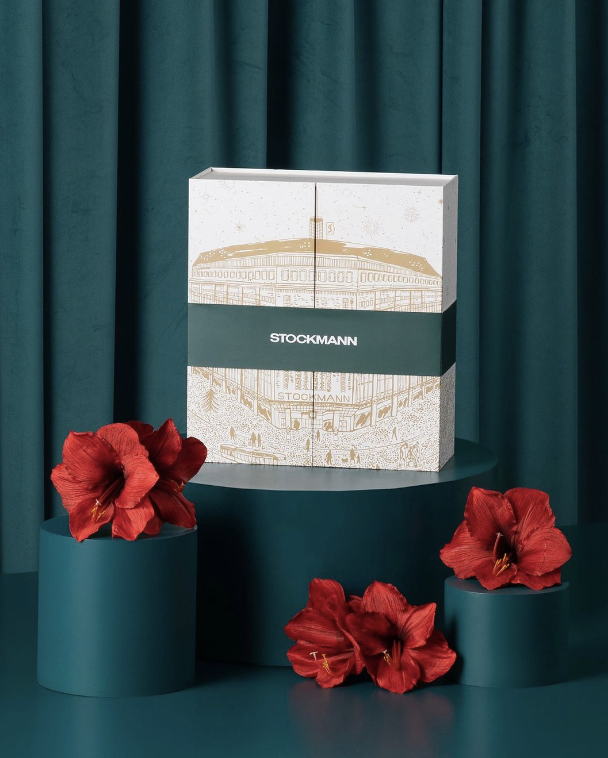 Advent calendar illustration for Stockmann containing a selection of beauty products.